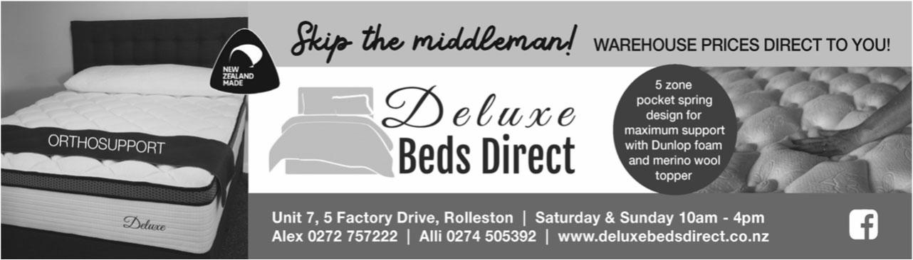 “YOUR LOCAL VETS IN ROLLESTON” Hours: Monday to Friday 8am - 6pm, Saturday 9am - 1pm Page 9 Wednesday 4th October 2023 • Hot Water Wash Bay • Double Fenced Paddocks • Loading Ramp • Large Car Parking (keep Float/Truck on site) • Electric Gates (horse proof!) FACILITIES INCLUDE: • 60 x 20 Floodlit Outdoor Arena • 40 x 20 Floodlit Indoor School • 8 Stables • Round Pen • Crush Grange Road Stables, Burnham, Selwyn 027 3476567 grangeroadstables.nz Full Livery Resident Instructor - Dressage (Brugs Nicholls) ESNZ Performance Dressage Coach Short-listed for the UK Olympic dressage team. Coaching Available - SERVICING NORTH CANTERBURYSPIDERS & WHITE TAILS ANTS FLIES FLEAS CARPET BEATLES SILVERFISH - FREE QUOTESWe do NOT Tele-market! Domestic Pest Control Specialists! Brian & Rose Walker 0800 667 778 www.spiderban.com ‘Owned and operated in Darfield since 2008’