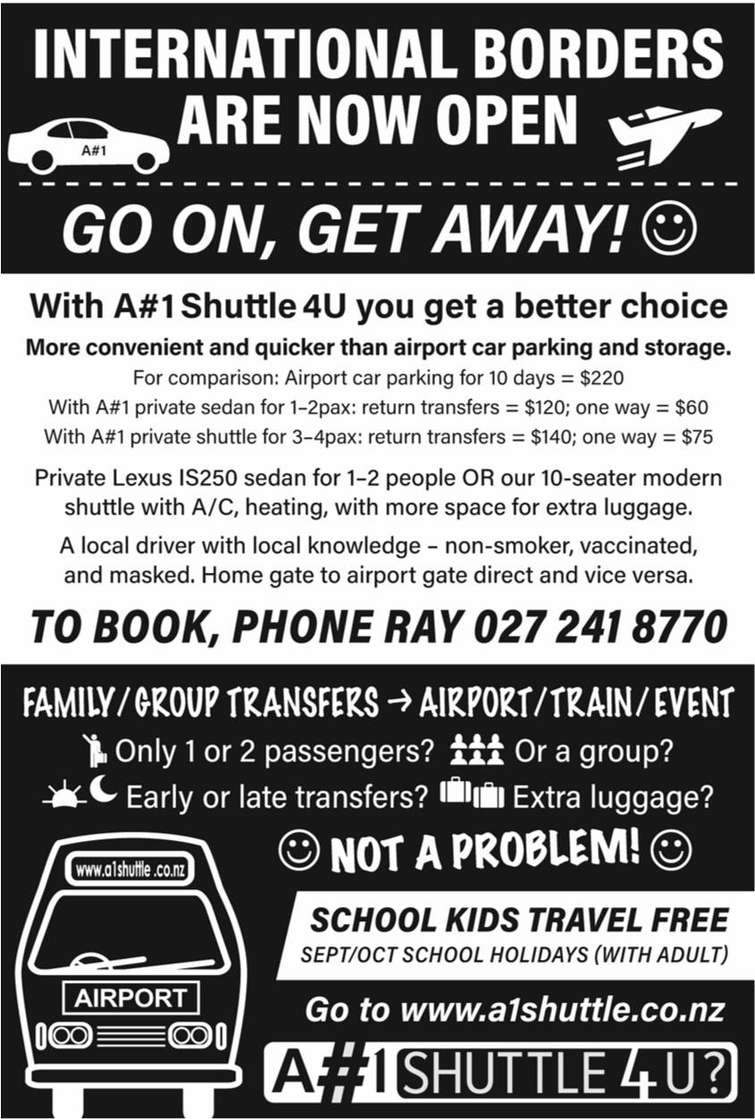 CATS on Courtenay Boutique Boarding Cattery! • Purpose built, nestled in a tranquil, rural setting. • Close proximity to all main centres. Phone: 027 433 3564 www.catsoncourtenay.nz Check us out on Facebook! ‘CATS ON COURTENAY’ 2 VILLA MEWS, ROLLESTON 021 254 4465 SELWYN CARPET BINDING & STITCHING Open: Mon - Thur, 9am - 2:30pm Weddings • Namings Renewal of Vows Funerals • Interments JENNI GIBSON Ph: 03 324 8332 M: 021 723 089 www.newzealandcelebrant.nz Page 10 Wednesday 4th October 2023 Jo Babe - Wedding Celebrant 0274323360 jobabenz8@gmail.com www.jobabecelebrant.co.nz For your personalised wedding ceremony