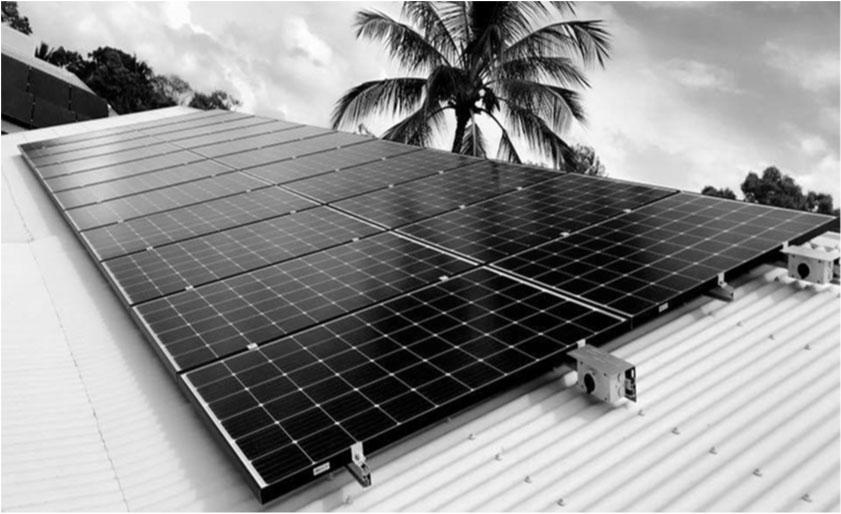 grid-tied, hybrid and fully offgrid systems. They also supply and install a range of solar batteries where required. Many other situations can have solar power such as dairy farms, and other commercial and industrial applications. The basic concept is that photo voltaic panels are installed on the roof or ground mounted and convert ultraviolet rays from the sun into electricity, at any time there is light available, which you can use within the home. The grid itself acts like a giant communal battery—any power that you produce in excess to your needs is exported back to the grid and you receive