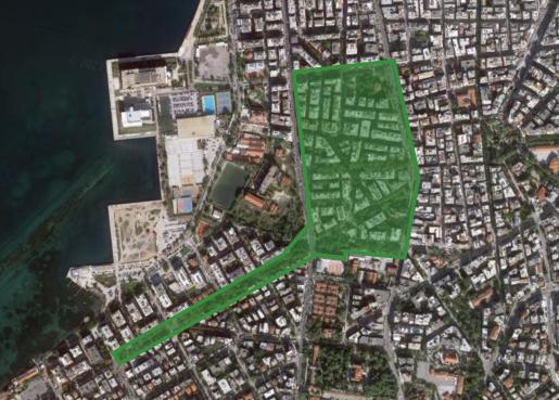 ιδιαίτερα σημαντικό, ερευνητές/τριες να πραγματοποιούν ενημερωτικές επαφές με πολίτες της περιοχής, στοχεύοντας στην άντληση περισσότερων πληροφοριών για την περιοχή μελέτης, προσεγγίζοντας βιωματικά την καθημερινότητα της γειτονιάς. Χάρτης νο 4 Περιοχή εμβέλειας ανάρτησης πληροφοριακού υλικού σε πόρτες πολυκατοικιών και καταστημάτων (πηγή: ιδία επεξεργασία, χρήση υποβάθρου Google Earth)