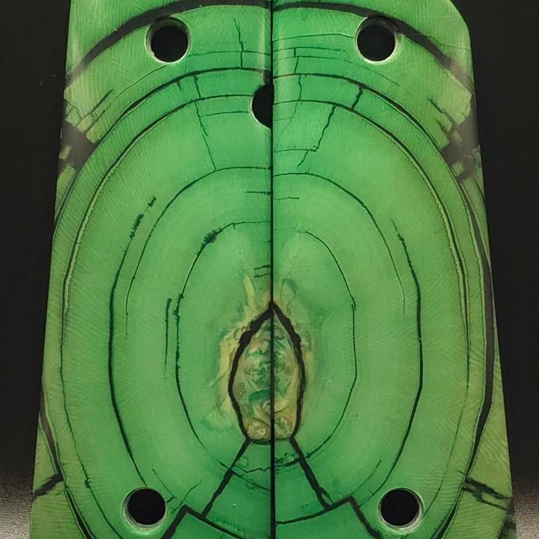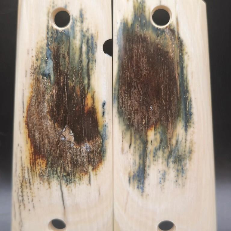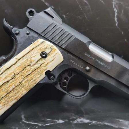 handcrafts premium 1911 gun grip from rare natural materials like woolly mammoth, dinosaur bone, and exotic woods.