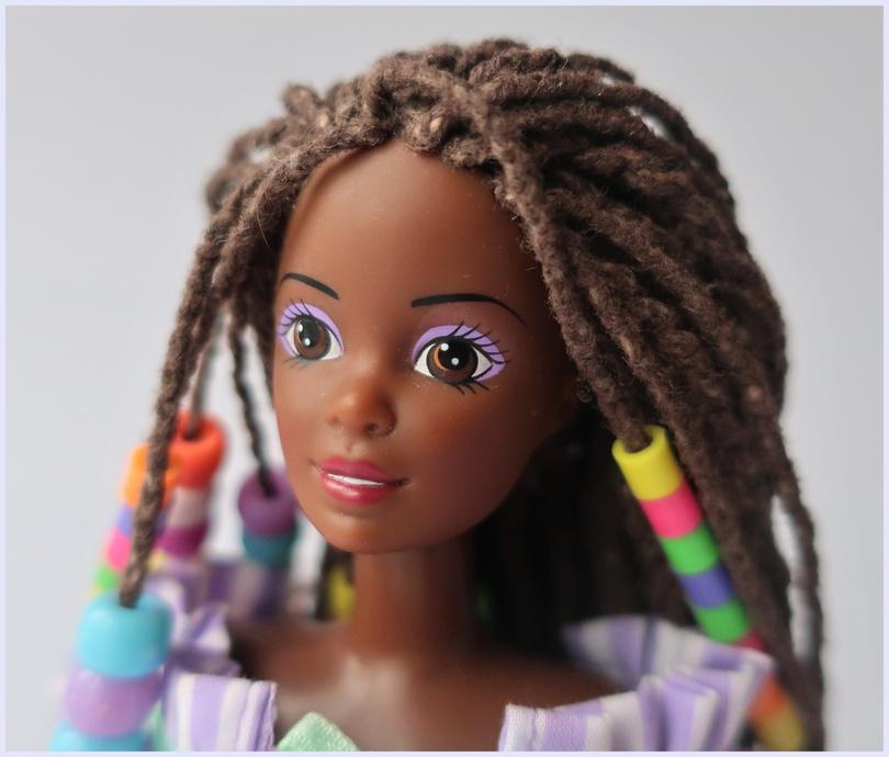 In 1994 Sindy gained another African-American friend Crimp & Bead Imani (ref: 4412) - and she was marked as Sindy's best friend She was launched at the Notting Hill Carnival after Hasbro acquired the doll rights from Olmec Toys, who had been producing her for a couple of years prior OlmecToys were an independent toy company producing black dolls and action figures