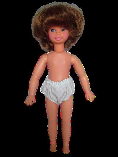 In 1968 Sindy gained two girlfriends: Vicki and Mitzi, who hailed from France This same year also saw the launch of Sindy's little cousin Betsy from America and Poppet, a friend for Patch June arrived in 1972 along with two more versions