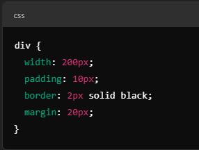Estecódigocrearáuna caja que tiene un ancho de 200px, 10px derelleno,unbordede 2px y un margen de 20px.
