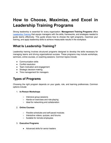 Management Training Programs is a U.S.-based leadership and organizational development firm dedicated to helping businesses build stronger managers, cohesive teams, and high-performing organizations. Their core mission is to deliver customized training solutions that transform management capabilities and drive measurable business results.
