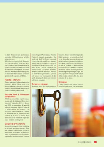 Politiche attive e formazione professionale A titolo sperimentale, le parti hanno concordato di affidare al Cfmt, per il periodo 1° dicembre 2011-31 dicembre 2013, la promozione di azioni di politiche attive per il lavoro volte alla ricollocazione dei dirigenti. Tale maggiore carico affidato al Cfmt sarà finanziato da un contributo una tantum di 40 euro a carico delle aziende e da un contributo di pari importo a carico dei dirigenti.