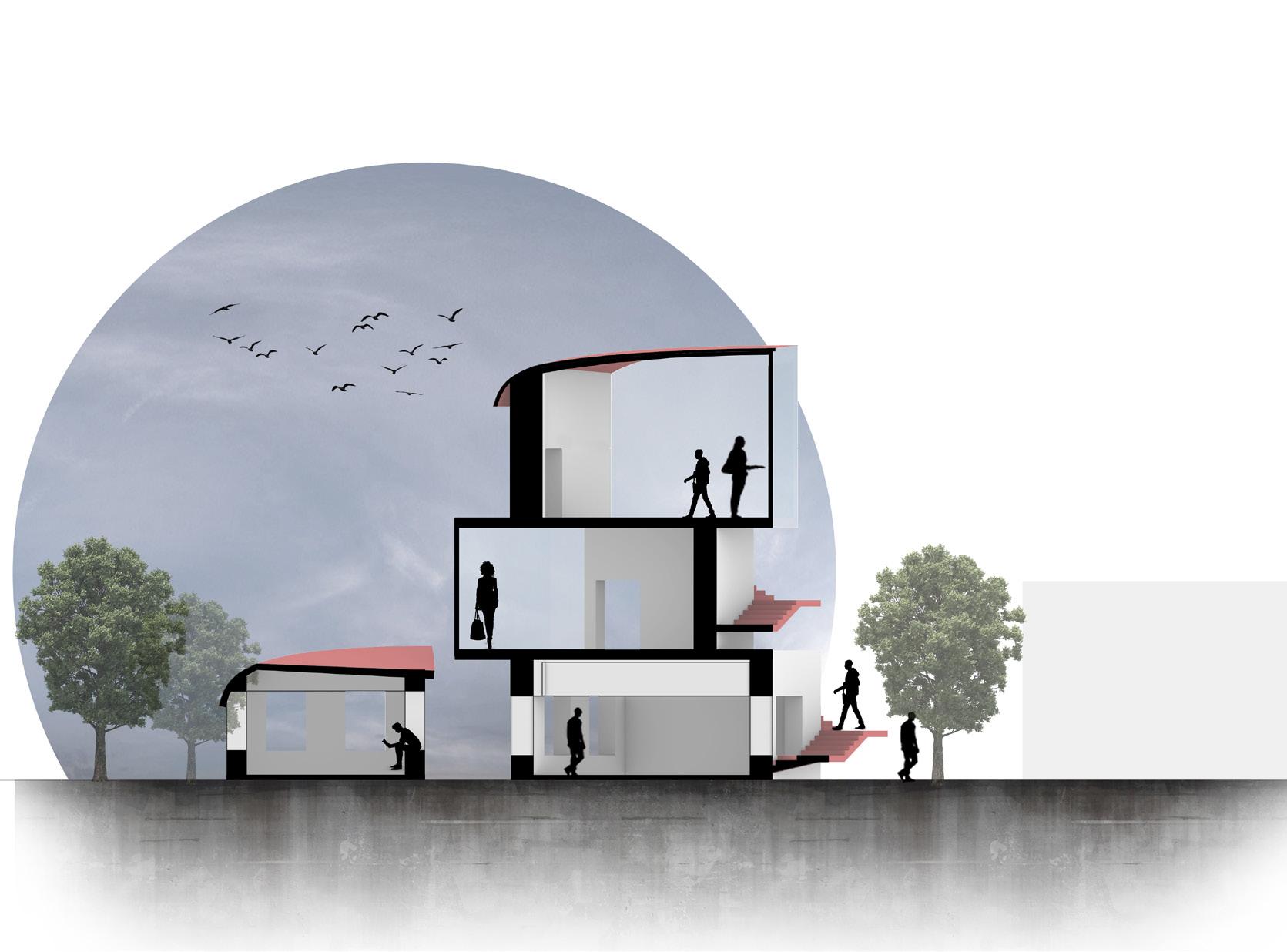 Designed as the focal point of the intervention, the railway area has an art school and center for cultural and culinary activities and workshops. This represents a reflection of the and its cultural heritage. institutions include exhibition areas, workshop areas, classrooms, etc.