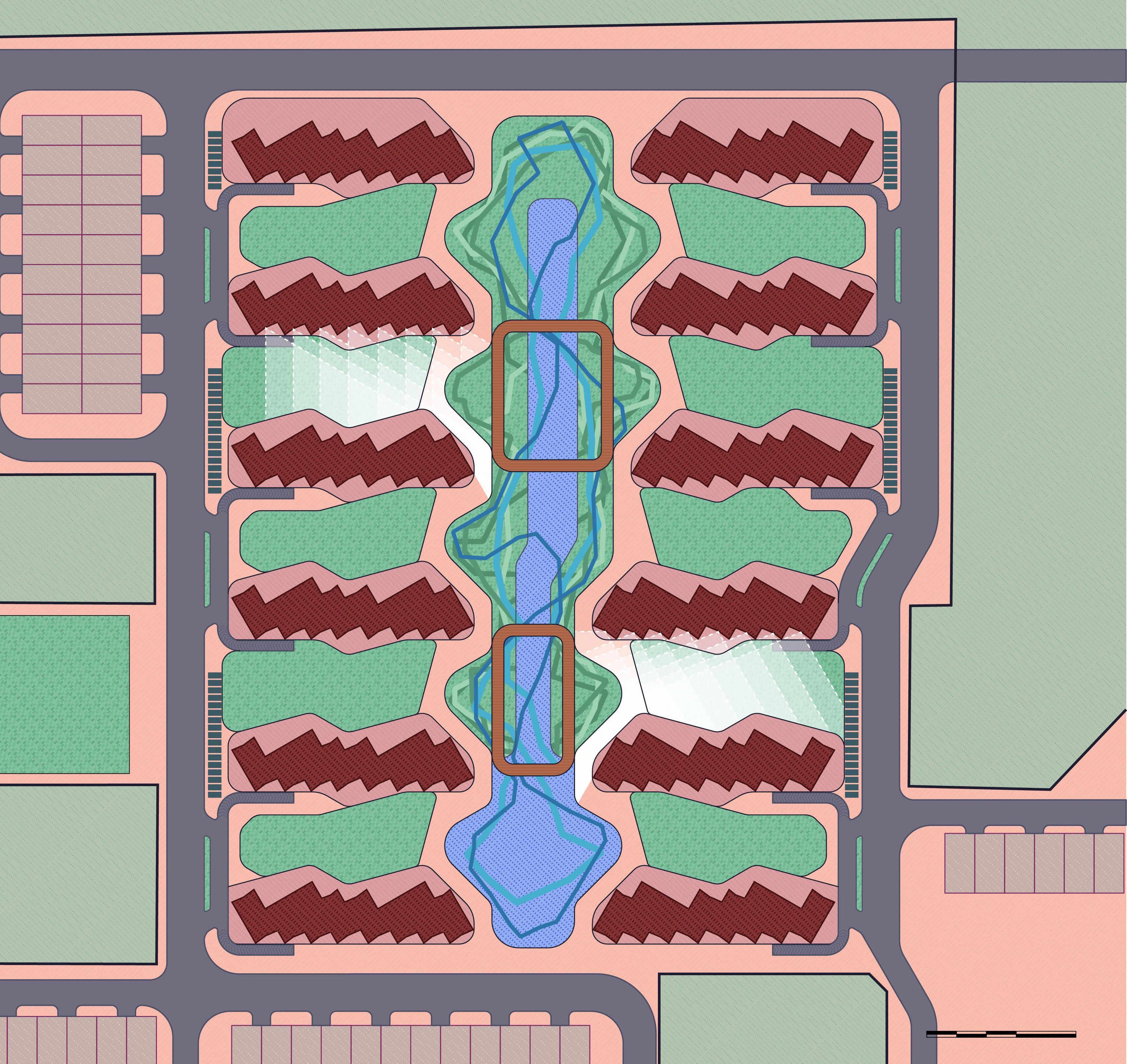 Area C: Art School, Designed as the focal whole intervention, park area has an a center for cultural activities and workshops. represents a reflection region and its cultural These institutions exhibition areas, workshop classrooms, etc.