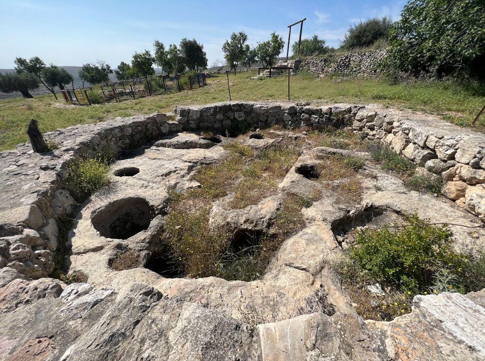 TheareaknownasTalAlRashas,withoutdoubt,themost significantarchaeologicalfeatureoftheancientcity'swater systemdatingbacktotheIronAgeII.Thisismadeupofagreat cylindricalsteppedpool(11metresindiameterand14indepth), anengravedsteppedtunnelleadingtothewaterspring,aswellas theremainsofanindustrialareawithawinepressandwine containerscutintotherock.