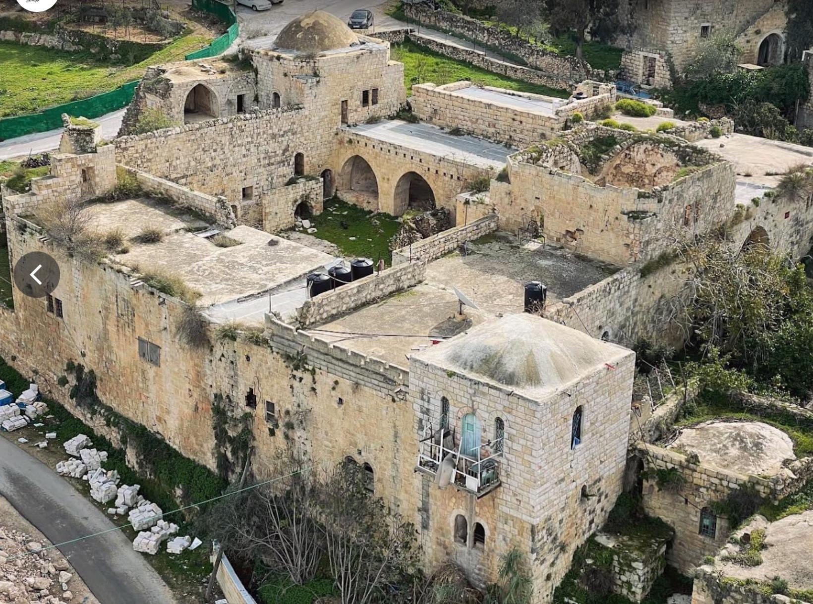 It contains imposing gates,vestibules,iwans,oil wells,and a wide courtyard.The area of its buildings with the surrounding land is three dunums.