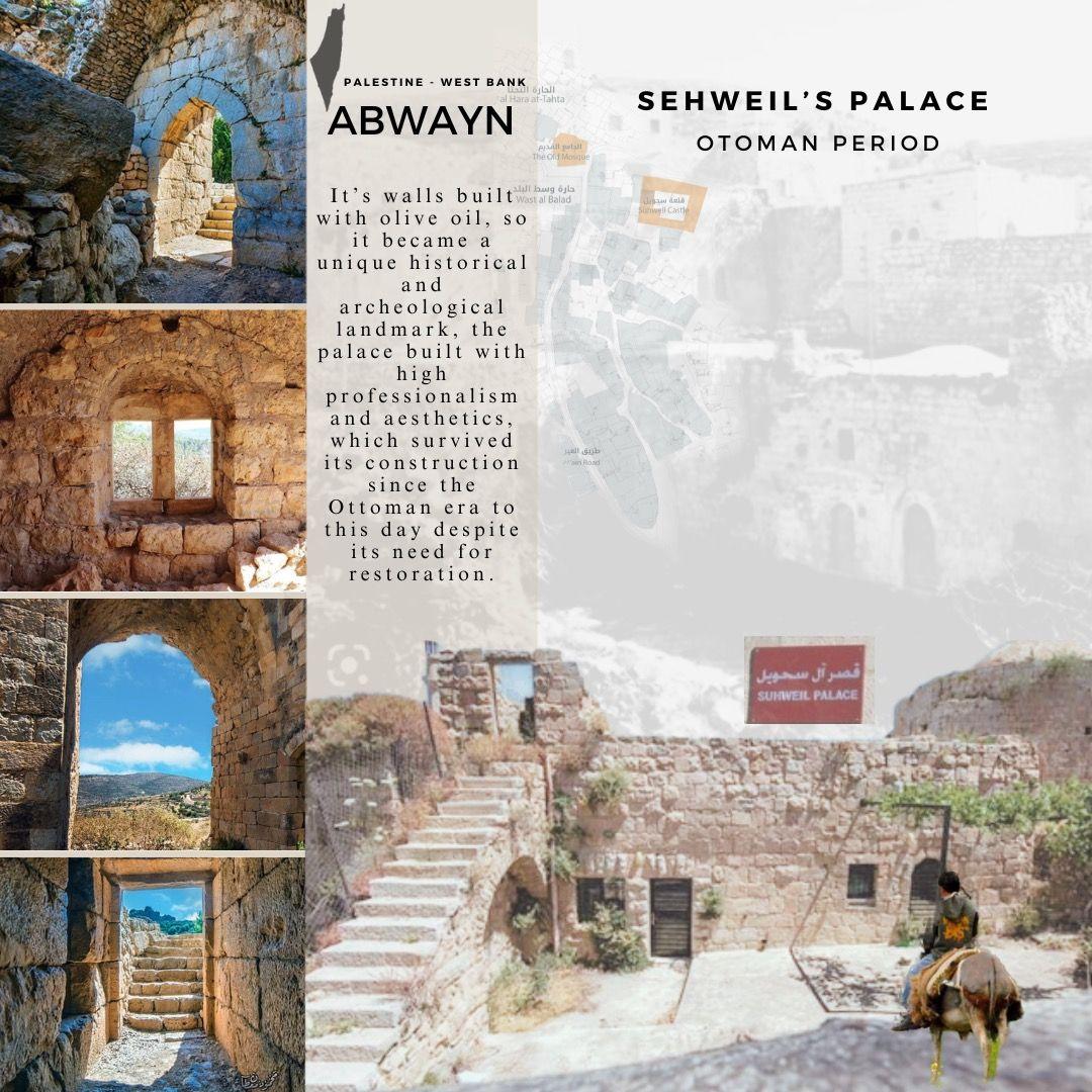 SehweilpalaceorcastleisoneofthemostwonderfulbuildingsinPalestinelocatedinAbwaynvillagewhich wasbuiltbyKhalilSehweilaroundtwocenturiesagointheOttomanera.Itisoneofmanycastlesthatwerebuilt intheOttomanseraandusedbytheheadofeverycommunity.