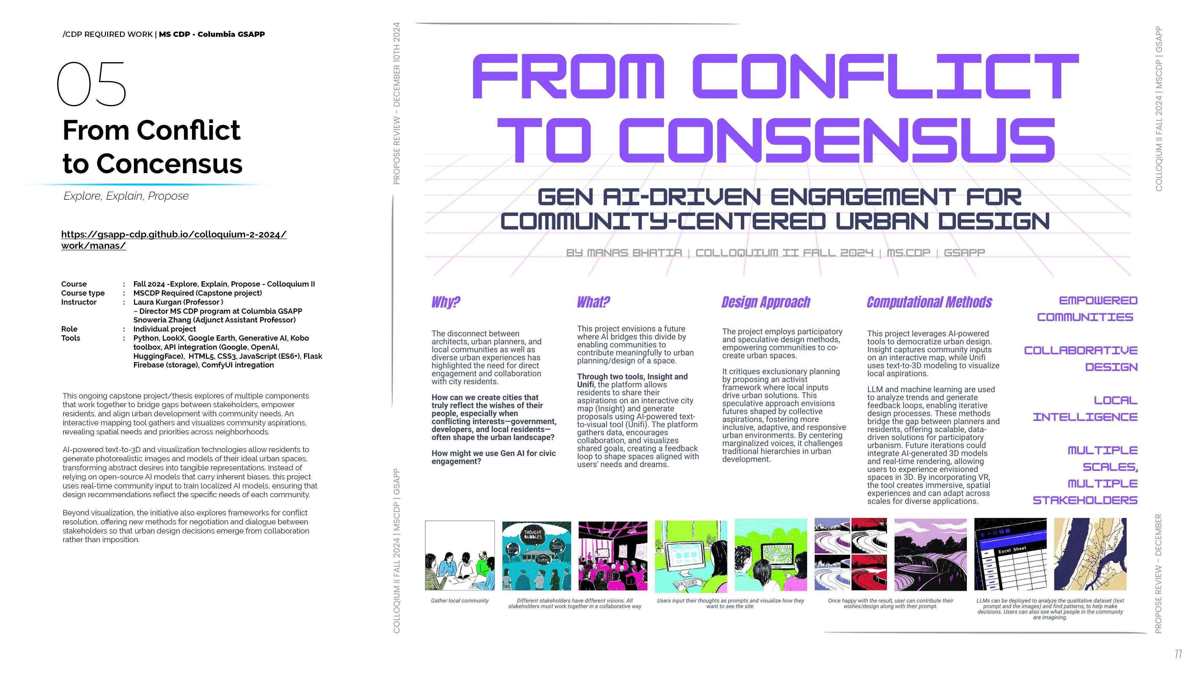 Thesis/Colloquium/Studio: "Using Generative Al for Civic Engagement·-selected for publication in UrbanMag, a student-led publicationby ColumbiaUniversityGSAPP's UrbanPlanningProgram.
