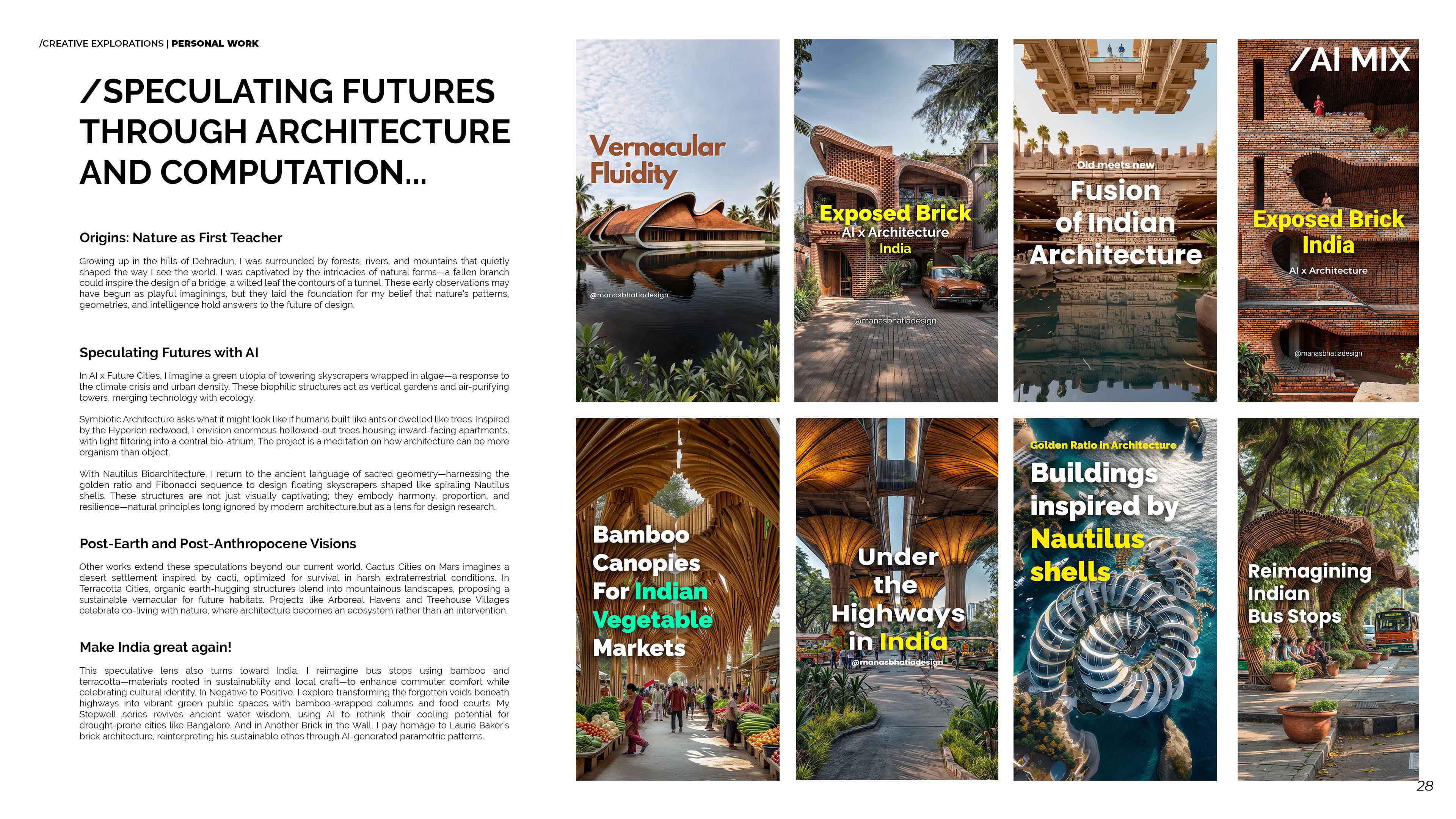 am an artist. working at the intersection of architecture, computational design, and visual storytelling. am deeply interested in using technology to translate urban observations into design solutions, speculate on possible futures, and decode nature and re-encode it into spatial design. I see emerging technologies-especially generative Al-notasends, butastools. extensionsoftheselfthatallow usto express visionsmore freely.