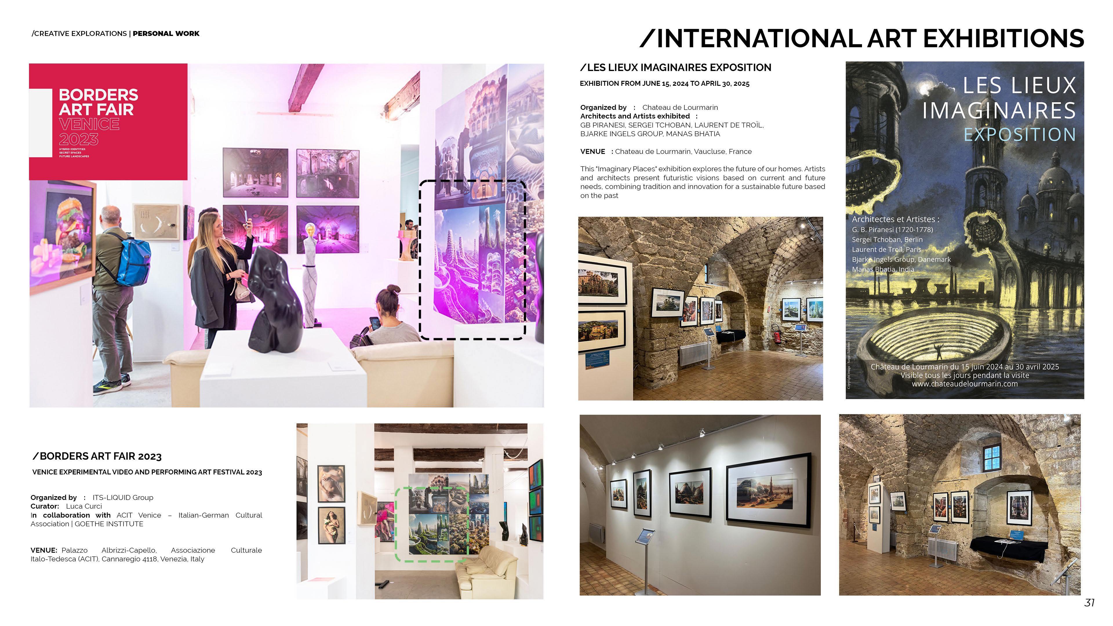 Work displayedin4+ InternationalArt Exhibtions ChateauDeLourmarin (France), Paularoberto (Spain),Borders ArtFair (Venice), andRiodeJaneiro. (2022-2025)
