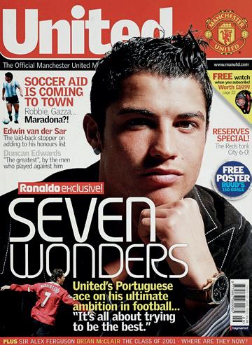 Rewinding the best part of six years to when Ronaldo arrived at United, the club magazine had the honour of the first interview with the 18-year-old – a few days before he made his famous substitute debut against Bolton Wanderers. The mag’s Paul Davies (nowadays editor of matchday programme United Review) tailed the new youngster – with the little blond fronds in his hair, remember them? – on his maiden journey to Carrington, where he met his new team-mates for the first time, saw the facilities, was measured up for kit and so on. After those formalities came the interview – and here are some telling soundbites from that day 22 years ago. And Ronny is still going…
