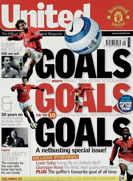 Ryan Giggs and Wayne Rooney coming top of the pile makes instant sense. Ryan, after all, is the club’s longestserving player ever, being active in the United team for 21 of the 33 years the magazine has been in existence… and was an utterly incredible footballer, as well as someone with popular-culture crossover cachet. Giggsy’s first solo cover was in the mag’s eighth issue (1993), while his latest was in issue 236 (March 2012) – some span!
