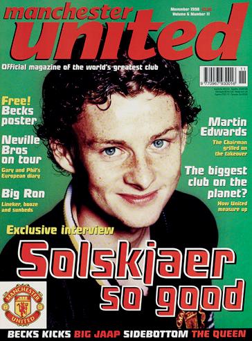 Looking at what that first issue contained is to get a vivid snapshot of that era. The front cover – in which United fans, pictured behind Peter Schmeichel’s goal, were arguably as much the stars as Schmikes himself – promised Alex Ferguson, Bryan Robson and Ryan Giggs. And it was Ferguson himself who kicked things off inside with a personal foreword in which he introduced the mag and laid down its manifesto.