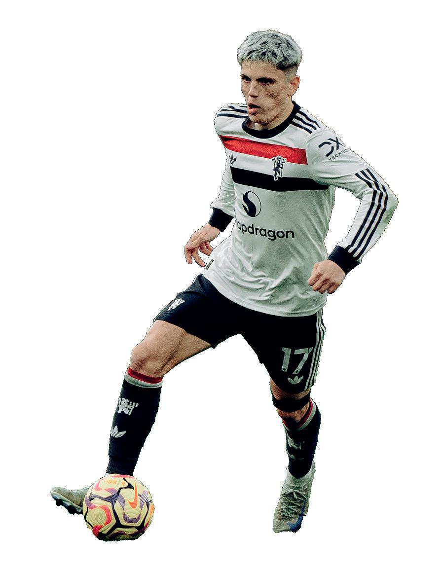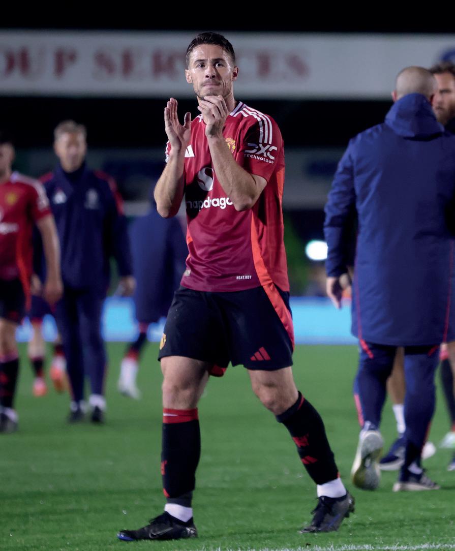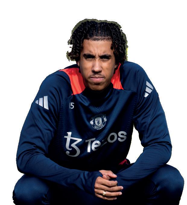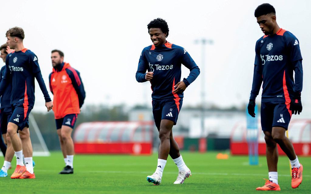 Some pieces of good news on the squad front around the time this magazine was going to press. Mason Mount full training with his team-mates at Carrington following his injury lay-off, and Malacia was also joining in sessions (pictured left – with a big smile, and not surprisingly) after his own lengthy absence. Neither player will be rushed, of course, and there will be work ahead, but it looks to be a timely boost for Ruben Amorim on his arrival. There have been positive words from Leny Yoro, as well (see opposite page) – fingers crossed the treatment room is gradually emptying out.