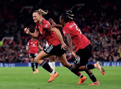 Marc Skinner’s Reds saw their perfect start in the league phase of the Women’s Champions League come to an end on Wednesday. United lost 5-2 in their fourth game, away to Wolfsburg, with Fridolina Rolfo and Melvine Malard scoring for United. Turn to p70 for more MUW news. SCAN TO