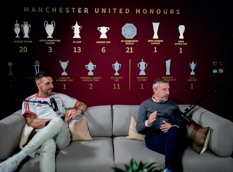 If you didn’t already know, the official Manchester United podcast is back, with an exciting new series that takes fans behind the scenes at the training ground. Episode three of Inside Carrington, presented by United Store, stars new Academy director Steve Torpey (right), in his first interview as a Red. That episode is available now via all major streaming platforms, and can also be viewed on the club’s YouTube channel. To find out more about the relaunched podcast series, turn to page 14.