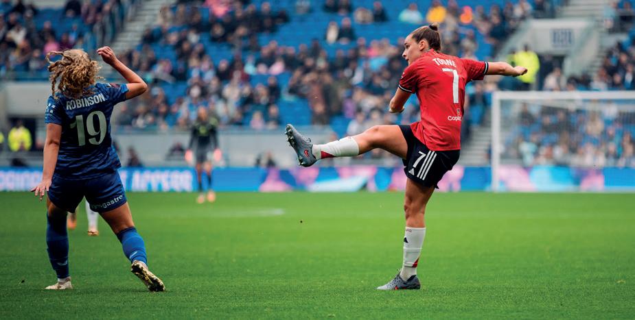 Just before we finish, we’re speaking ahead of facing Aston Villa. It’s a fixture you’ve had some good memories from over the years – we got promoted to the WSL against Villa, you’ve scored here at Old Trafford against them, and you’ve found the net at Villa Park too. What is it that you like about the Villa fixture? I don’t know, honestly! It’s going to be exciting at Leigh, our fans are great at Leigh. Villa are a very well structured team. Sometimes the table doesn’t show how good they are, because they are actually a very good team. Obviously, Kirsty Hanson plays for them, who I know really well. She came to one of our games with her mum and I got to see her because I was upstairs. It’s always nice to check in with Kirsty. ●