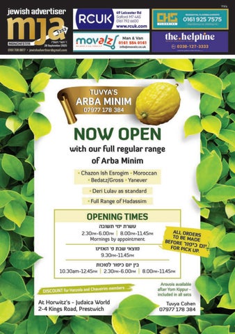 To advertise phone: 0161 708 8877 | E-mail: sales@manjad.co.uk/jewishadvertiser:gmail.com