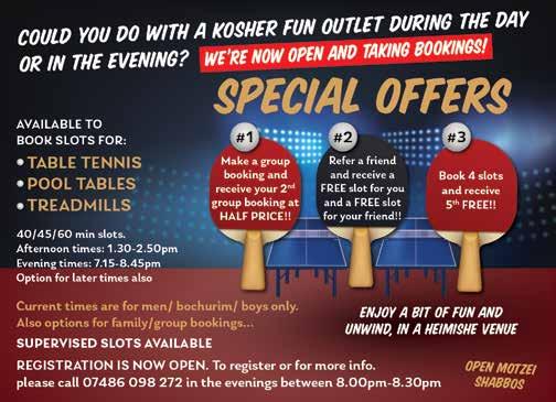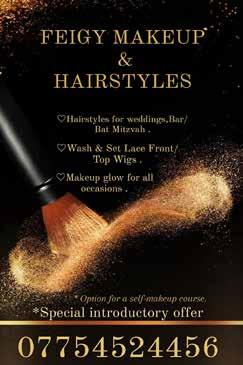 To advertise phone: 0161 708 8877 | E-mail: sales@manjad.co.uk/jewishadvertiser:gmail.com 85 Issue 1131 PERSONALISED WEDDINGS & EVENTS TO SUIT EVERY BUDGET 07971 815 740 YOUREVENT@YOSSILEWIN.COM