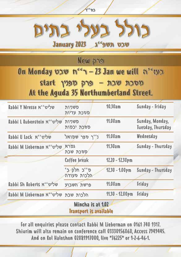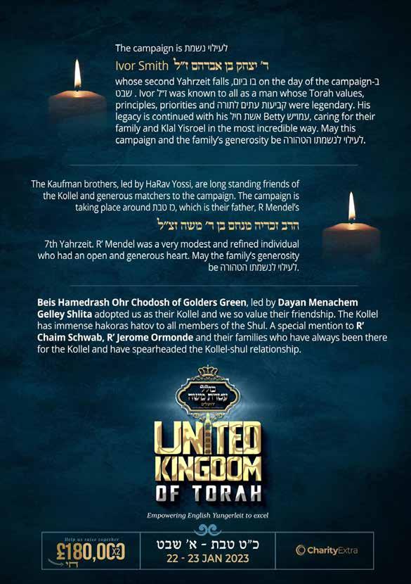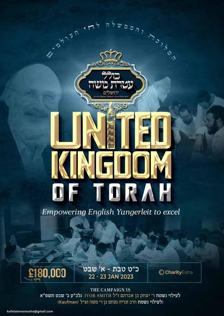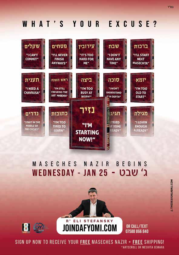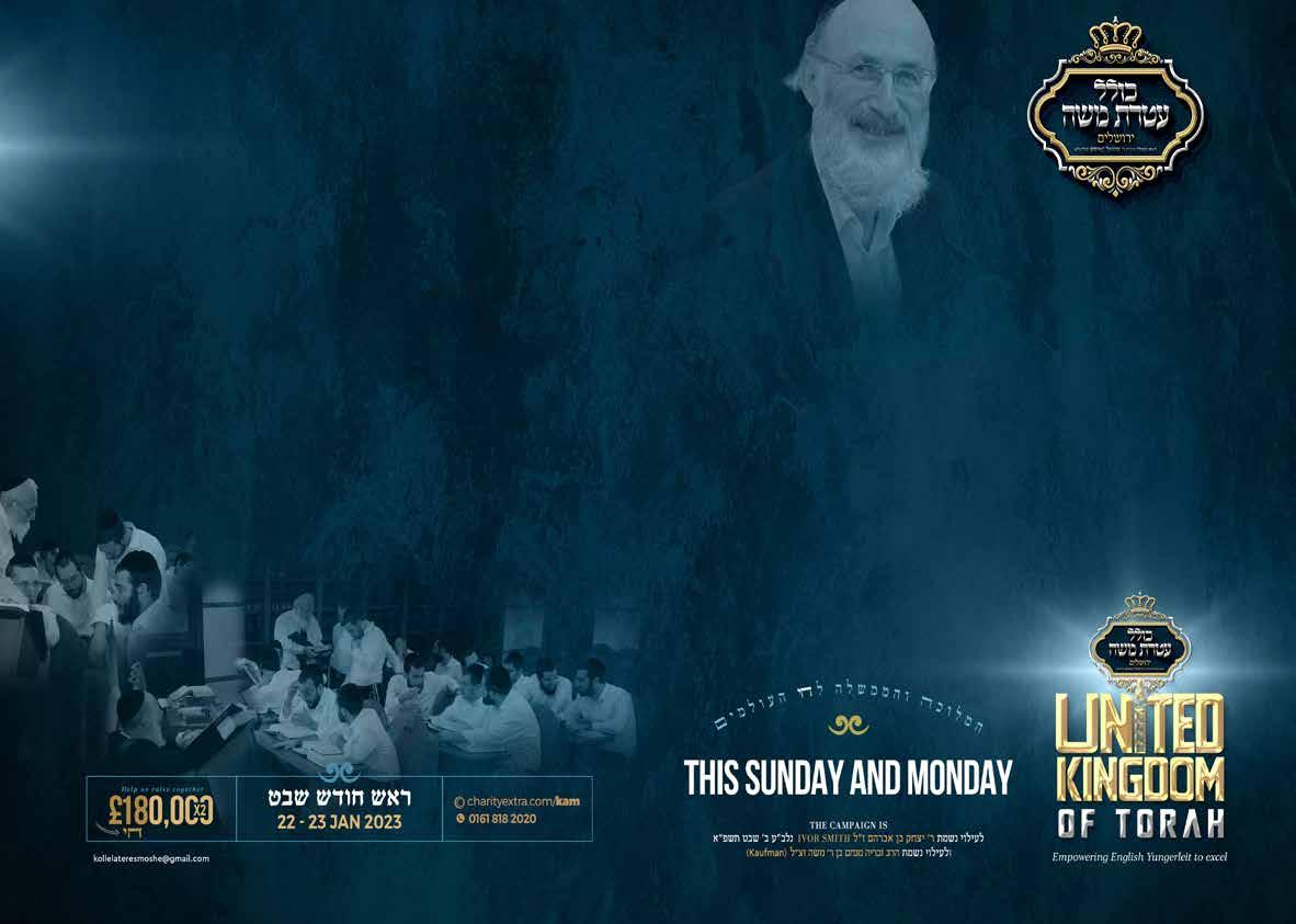 To advertise phone: 0161 708 8877 | E-mail: sales@manjad.co.uk/jewishadvertiser:gmail.com 43 Issue 1131 With Harav Yoel Rabin א”טילש Renowned Maggid shiur in Yeshivas Mir Yerushalayim YESHIVA Experience Shabbaton Invites all European boys aged 17-18 entering Yeshiva next year for a ורתי תשרפ In London Be exposed to one of the most respected and dynamic Maggidei Shiur in Yerushalayim Unite and shteig for 52 hours with boys from London, Manchester, Amsterdam & Antwerp Get to meet the boys that will be joining you in Yeshiva next year Hear all the direction and guidance you need that will magnify & maximise the hatzlocha of your Yeshiva experience Packed Friday, תבש, תבש יאצומ & Sunday Programme To register, please email: bochurimuk@gmail.com Applications Deadline: 28 th Jan Master Masechta is an extra-curricular program that empowers and inspires boys growing up in today’s world to become real Bnei Torah, and prepares them for Yeshiva and beyond by nurturing a love for learning that will remain with them for life. In a relaxed but motivating environment, Master Masechta caters to all talmidim on a personal basis and guides them to master Torah whilst forging a profound bond and tremendous achdus with their friends and Rebbeim. The Yiras Shomayim that they gain in the process is a lifelong asset that they always treasure. Bochurim UK & Master Masechta