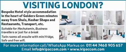 To advertise phone: 0161 708 8877 | E-mail: sales@manjad.co.uk/jewishadvertiser:gmail.com 87 Issue 1131