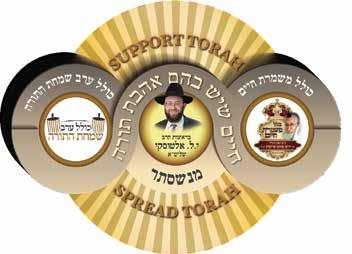 Avrumi Hecksher Meir Itzinger Moishe Jay Moishe Kirsch Moishe Last MD Leitner Benjy Morgan Jerome Ormonde Boruch Reifer Chaim Schwab Ben Shipman Wiederkehr Lazer Wolf Margulies (TC) Monderer (TC) USA Boruch Boddenheim ללוכה יכרבא Family Yehuda Abraham Family Yitzchok Barnett Family Shlomo Beaton Family Ahrelle Bowden Family Efraim Freifeld Family A Y Glickman Family Yechezkel Heilpern Family S Z Homburger Family Yehoshua Kestenbaum Family E Z Knopfler Family Mordche Kuflik Family Uziel Rabson Family Eliyohu Rebenwurzel Family Moishe Schleider Family Y C Solomon Family S B Spitzer שמש תיב Family Shimon Conway Family Yechiel Jacobson Family Beni Kruskal Family Yair Kruskal Family Yackov Saltzer םילשורי Family Zvi Cohen Family Moishe Jacobson Family Dovid Kestenbaum Family Shimmy Rakov Yeshivas Toras Chaim (TC) א’’טילש לאומש ’ר תחפשמ Yeshivas Sharei Chochmoh (R Shloime Reich) families for taking part Torah' campaign.