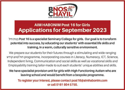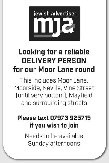 To advertise phone: 0161 708 8877 | E-mail: sales@manjad.co.uk/jewishadvertiser:gmail.com