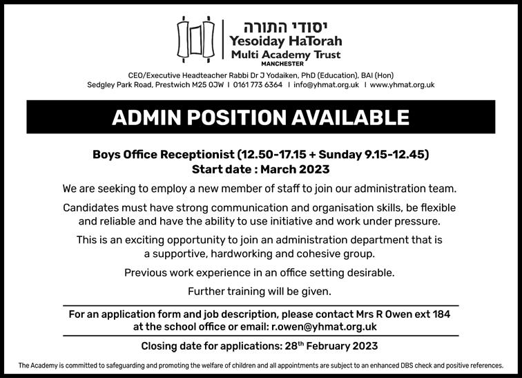 To advertise phone: 0161 708 8877 | E-mail: sales@manjad.co.uk/jewishadvertiser:gmail.com 23 Issue 1135