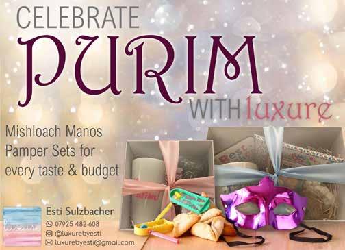 Issue 1135 68 • Free Delivery • 5% discount on every additional order Deadline for orders Thursday 2nd March 12:00 am Extra fee for orders after until Sunday 5th March 12:00am Looking forward to hearing from you! Suri Zahn Email manosvemishloach@gmail.com Call or text 00972586252020 or 00447421089071 £27 / $33 £49 / $60 £16 / $20 £30/ $37 NEW! Want to give your children or friends Mishloach MAnos in Yerushalayim?