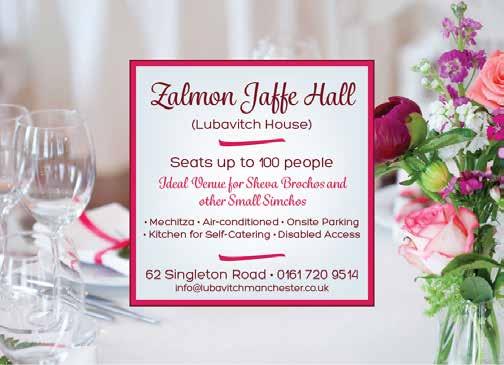To advertise phone: 0161 708 8877 | E-mail: sales@manjad.co.uk/jewishadvertiser:gmail.com 95 Issue 1112