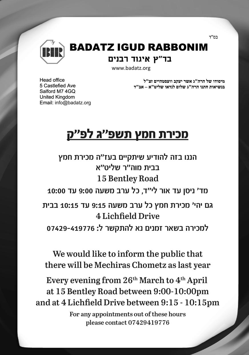 The Manchester Jewish Advertiser accepts no responsibility for the Kashrus of any product advertised in this publication.