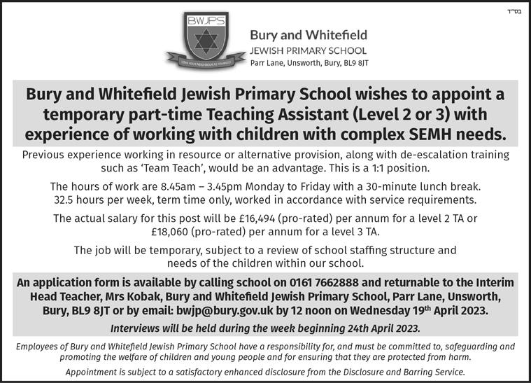 To advertise phone: 0161 708 8877 | E-mail: sales@manjad.co.uk/jewishadvertiser:gmail.com 23 Issue 1112