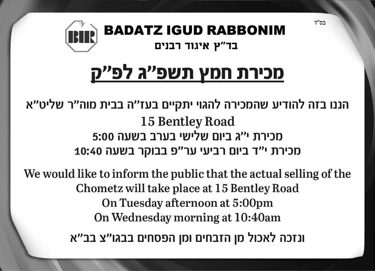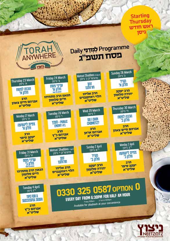SHABBOS ZEMIROS FOR YOUR SIMCHA. Call 07443649925 740 2041 ◄ BADEI PENINA PACKS AVAILABLE 24/7 (SHABBOS AND YOM TOV INCL.) from key box round the side of 21 Lichfield Drive. Code is 864. £2/pack◄