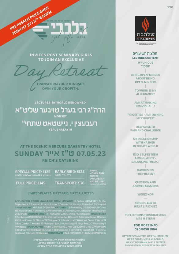 Issue 1112 30 PERFECT YOUR PRINT HAGEFEN MANCHESTER תונבל ןמאנ לארשיבתיב Send your resume to a senior Shadchan: office@hagefenmanchester.com 46 Leicester Road, Salford M7 *First one to suggest it via Hagefen. (T&C apply) TO SUGGEST A SHIDDUCH OR FOR GUIDANCE: 0161-8200-321 CONFIDENTIAL LINE ROF E V ERYSUCCESSFULSU G *NOITSEG£100 ASSISTING LOCAL FAMILIES WITH SHIDDUCHIM