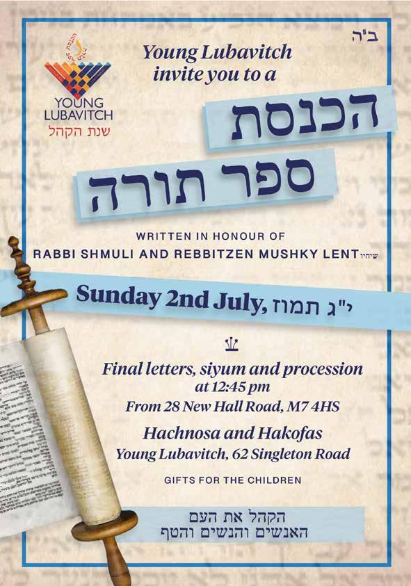 To advertise phone: 0161 708 8877 | E-mail: sales@manjad.co.uk/jewishadvertiser:gmail.com 17 Issue 1150 ד"סב Email: admin@dorldor.co.uk Charity No 1186101 07543 470 028 www.dorldor.co.uk subsidised prices seebelowformore IN-PERSON "IN IT TOGETHER" Modular courses on a four-week basis Due to popular demand we are delighted to launch Join like-minded mothers who are ready to take their parenting to the next level. Workshops starting week of 25th June Mrs R. Bondi Mothers of children ages 2-12 £7 per session Monday mornings 9:30 am Tuesday evening 8:30 pm Mrs R. Litwin Mothers of children ages 8-15 £10 per session Tuesday evening 8:30 pm Call/text - 07543 470 028 | Email - admin@dorldor.co.uk Online- www.dorldor.co.uk PARENTING WORKSHOPS