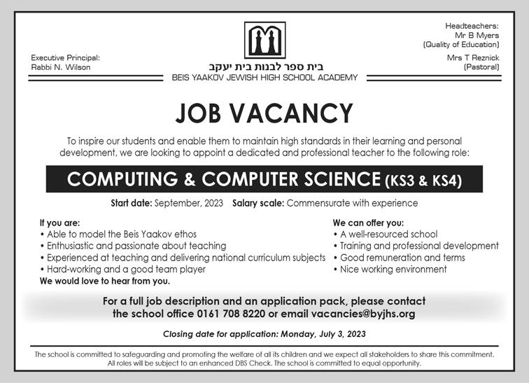 To advertise phone: 0161 708 8877 | E-mail: sales@manjad.co.uk/jewishadvertiser:gmail.com 15 Issue 1150