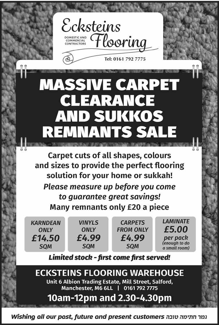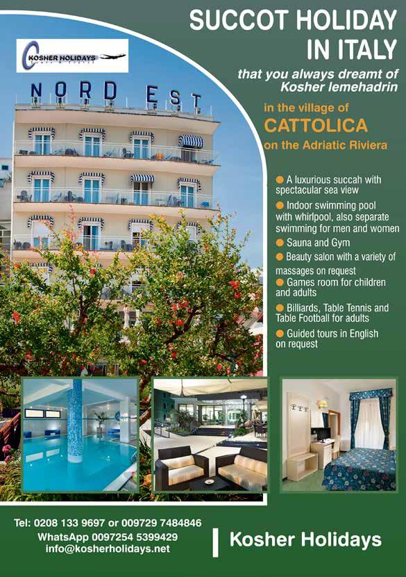To advertise phone: 0161 708 8877 | E-mail: sales@manjad.co.uk/jewishadvertiser:gmail.com CRUSHED VELVET GEDOLIM PAINTINGSNEW Hard-Wall Schach Super Deluxe Rapid-Roof Arba Minim GOLDERS GREEN FELSENSTEIN HALL 173 Golders Green Rd NW11 9BY MANCHESTER FORMER B&M BARGAINS Bevendon Square Broughton, M7 4TF STAMFORD HILL ADEN HALL 127 Clapton Common E5 9AB TEL: 020 3011 3117 MAIN BRANCHES Leeds Menachem Gilbert 07799886620 Prestwich Hillel 07972462953 or Yossi07966019343 17 Woodlands Crescent Gateshead Shloimi Mannes07929603159 38 Hilda Street NE8 1YB Kosher City 81-83 Windsor Road 0161 740 3428 M25 0DB Salford - Sholom Cohen 07960163072 / 01617950098 / 07549887957 - Beis Menachem Hall, Cnr Park Lane and Upper Park Road, M7 4JD Lower Broughton רפוק םיייח השמ 07400240400 CALL: 0203-011-0338 ORDER ONLINE: WWW.SUKKAHMART.CO.UK