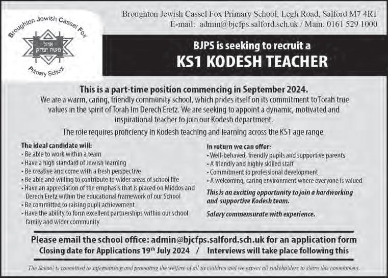 PLEASE NOTE ©: No part of this publication may be reproduced. All artwork is protected under copyright laws and under no circumstances may it be used unless requested and authorised in writing from the editor. The editor reserves the right to alter any submissions as seen fit, and will not be held responsible. The editor cannot be held responsible for consequences resulting in the publication of an advertisement. No re-publication or refunds will be offered in the case of minor errors that have no effect on the content of the advertisement. The Manchester Jewish Advertiser accepts no responsibility for the Kashrus of any product advertised in this publication. Published