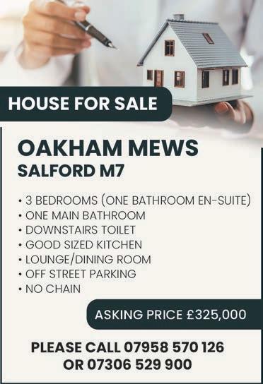 house to let, in Lower Broughton area. Good condition. £1,050 per month. Call/ text 07790 666 229◄