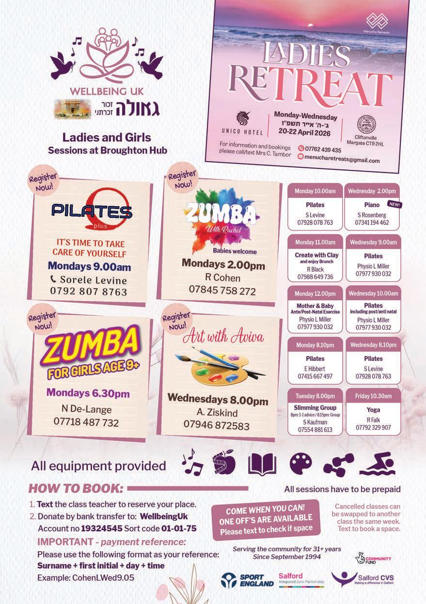 ACTIVITIES & GROUP HEALING for Heimishe ladies.For programme details please call Mrs Fried 0161 708 0246 ◄