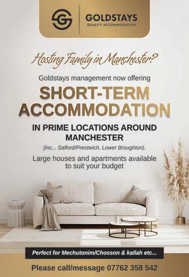 PRESTWICH SHORT TERM RENTAL- perfect for simchas. Stunning 2 bedroom flat, sleeps 7. Central location, next to shul. 07738009004 ◄