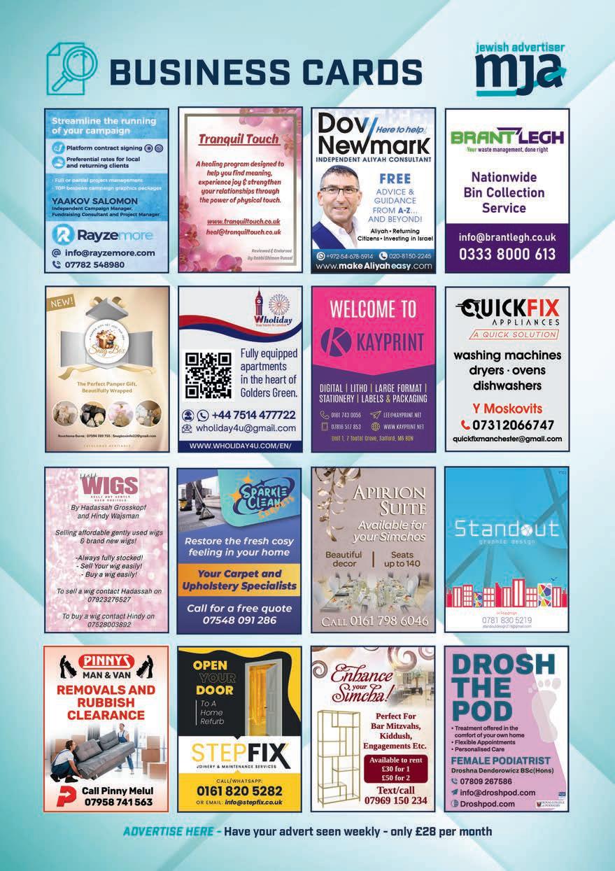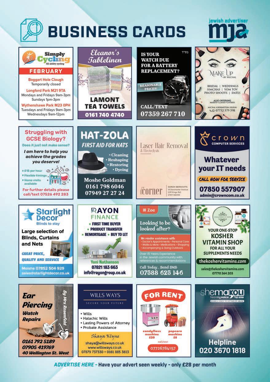 SIMCHA ERRANDS. Making a simcha? Don’t have a car? Lifts available evenings and weekends, 0161 795 7068 / 07434 519316 ◄