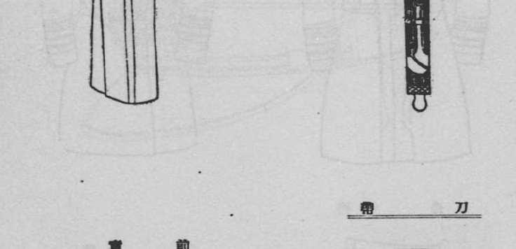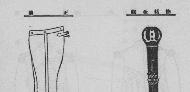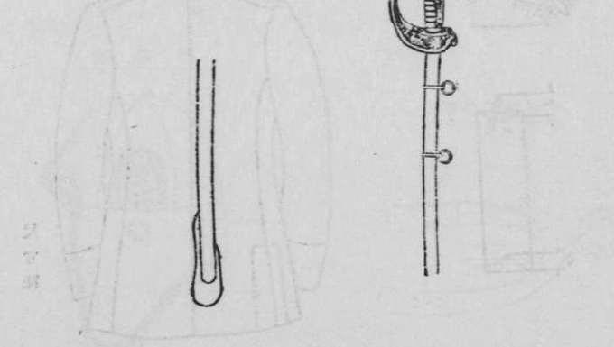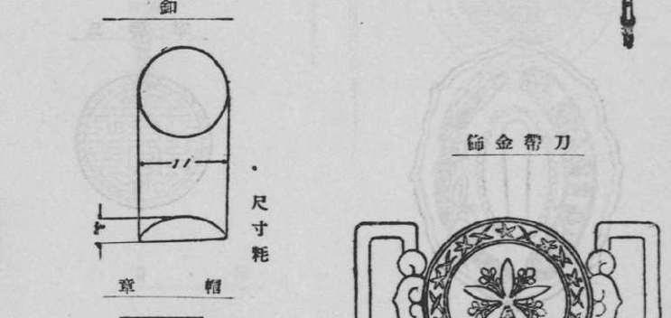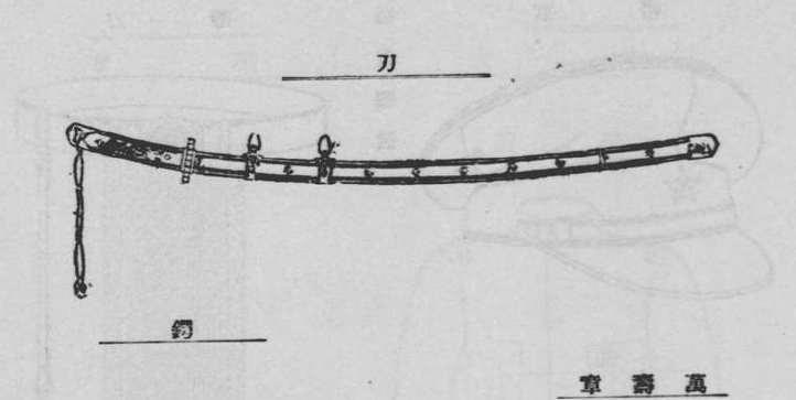 多的傳統元素。例如,龍圖案,萬壽章,以及梅花等各種傳統上代表祥瑞的、 爲皇帝所常用或專用的內容,均被他們完美地添加到了以日化歐式風格爲底 色的皇帝御服當中。這些設計美觀大方,旣體現了滿洲帝國與歐西各國以及 親邦日本帝國都不同的民族特色,又彰顯了設計師們對皇帝陛下的拳拳忠愛 之心。筆者畢竟不是設計類的專才,多加贅述恐反爲不美,還請讀者自己閱 看法令原文中的附圖,體會設計者的匠心。在這裏,我僅就一端做稍微詳細 的說明——皇帝的佩刀。