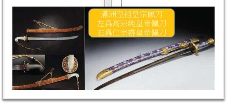 日本帝國天皇佩刀與我皇祖皇宗淸刀佩刀對比, 可明顯看出滿洲國皇帝佩刀綜合了二者的特點