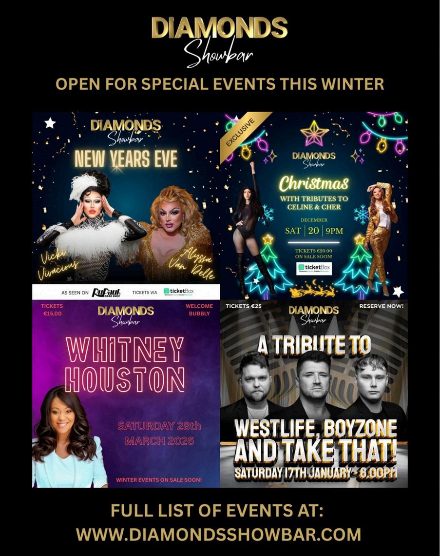 It’s the most wonderful time of the year and there’s so much to celebrate. Don’t miss Diamond’s Showbar’s Christmas party and their famous New Year’s Eve party, they’re going to be immense.I love seeing all the fairylights as I drive around, they bring so much warmth and joy.