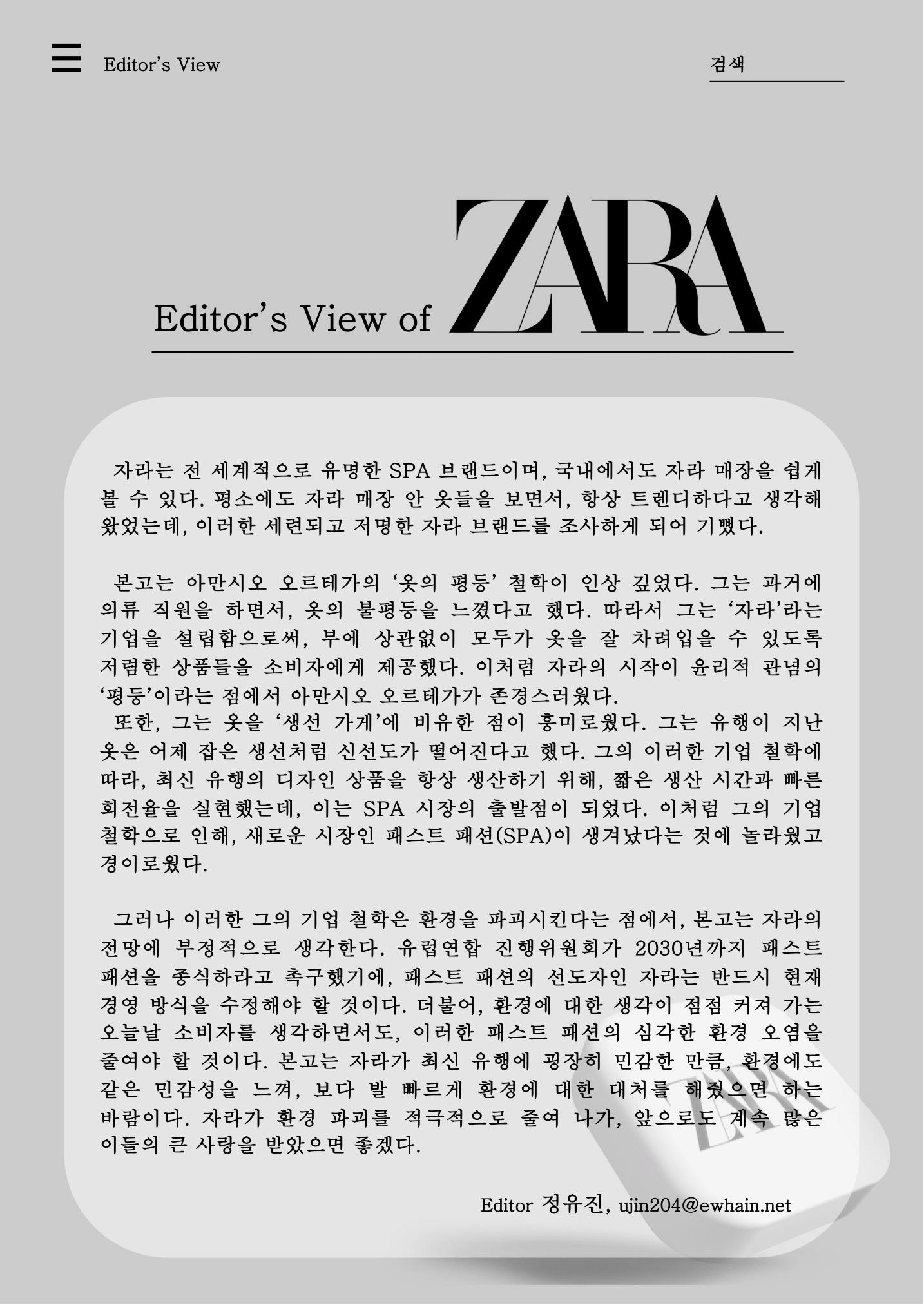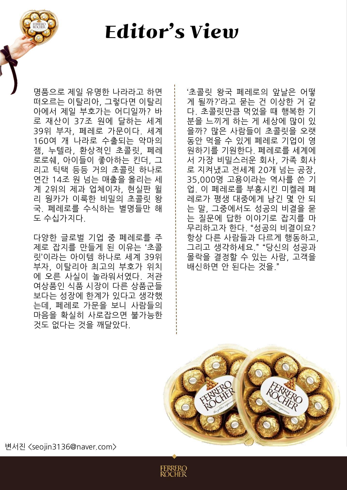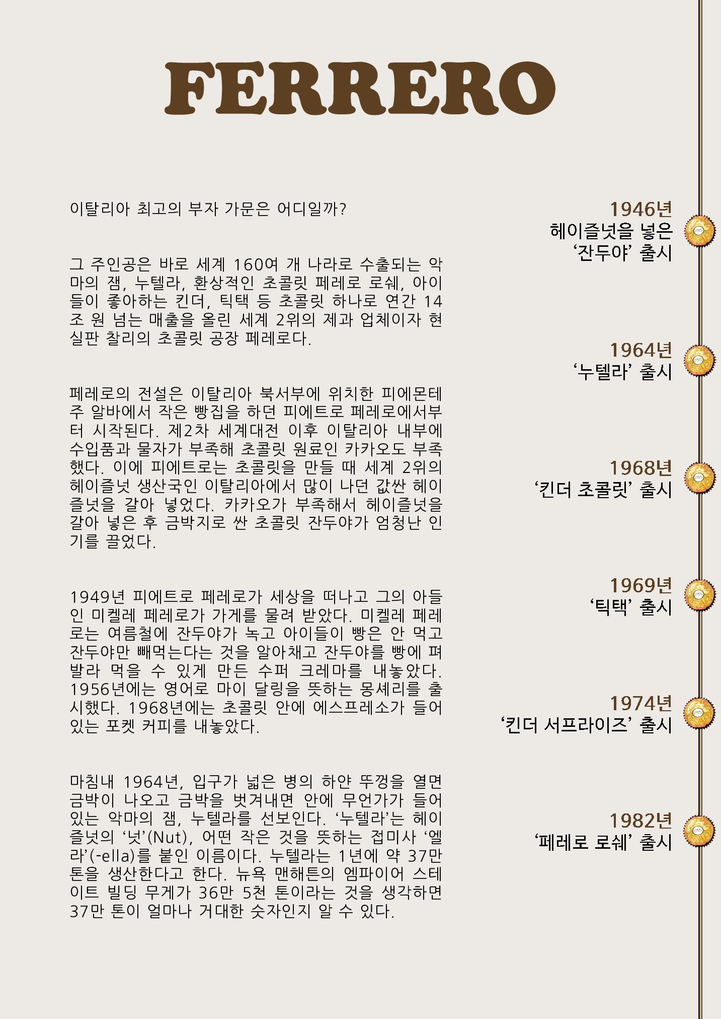 7 8 9 10 11 ‘ 거대한 자본시장에서 끈질기게 살아남은 그들의 역사 ’ ‘ 혁신을 거듭하는 아시아 최고의 기업 ‘ ‘ 페스트 패션의 선도자이자 최신 트렌드를 이끄는 기업‘ ‘ 현실판 윌리 웡카가 이룩한 비밀의 초콜릿 왕국 ’ ‘ 식품 공룡 그 위대한 시작 ’ EWHA WOMANS UNIVERSITY MANDIA 2ND MAGAZINE